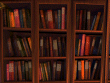 der Kerze auf dem Schreibtisch. Schaue dir erneut das Bücherregal